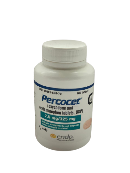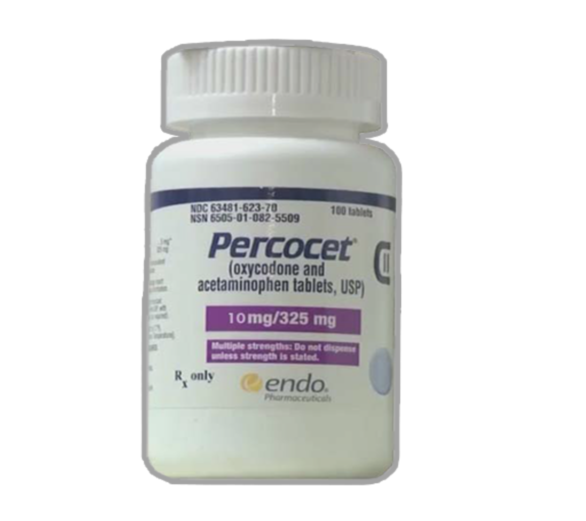 Percocet 5/325mg medication is used to help relieve moderate to severe pain. It contains an opioid pain reliever (oxycodone) and a non-opioid pain reliever (acetaminophen). Oxycodone works in the brain to change how your body feels and responds to pain. Acetaminophen can also reduce a fever.